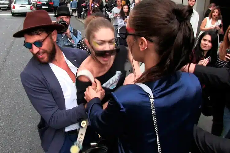 Era la Semana de la Moda en Milán, y ella salía del recinto donde había estado desfilando. Hay que decir que estaba acompañada, no solo por su hermana Bella, sino también por sus guardaespaldas. El caso es que el hombre consiguió despistar a los guardaespaldas, para así, conseguir coger a la modelo de la cintura.