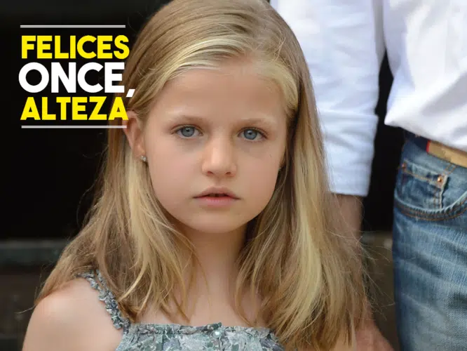 Leonor de Borbón, Princesa de Asturias, Princesa de Gerona y de Viana, Duquesa de Montblanc, Condesa de Cerverá, Señora de Balaguer, y Heredera al Trono español, cumple once años. Los que la conocen aseguran que es una niña resulta, sosegada, encantadora, dulce, tímida si no te conoce, reflexiva y observadora. Con una enorme capacidad de planificación, piensa antes de actuar y cuando actúa, lo hace con constancia y perseverancia. Los mismos adjetivos se le adjudicaban a su padre cuando tenía la misma edad.