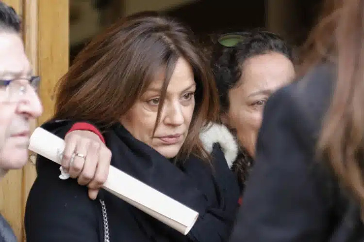 Familiares y amigos de la familia, como Nieves Álvarez y Teresa Viejo, acompañaron Nuria y su hermano, José María, en el fallecimiento de Jaime. El marido de Nuria, Fernando Fernández Tapias, se ausentó debido a su delicado estado de salud. En la foto podemos observar como Nuria, rota de dolor, se abraza y se apoya en su único hermano y padre de su sobrino fallecido.