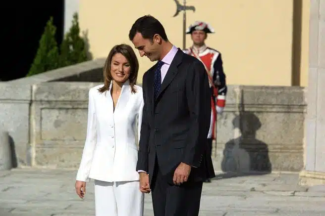 En su primera aparición pública como prometida de Felipe, Letizia nos mostró su cara más sonriente. Tanto Felipe como Letizia estaban muy nerviosos, pero muy contentos. El amor se veía reflejado en sus miradas, algo que hoy en día no hemos conseguido volver a ver. Incluso se atrevió a cortar a Felipe para seguir hablando.
