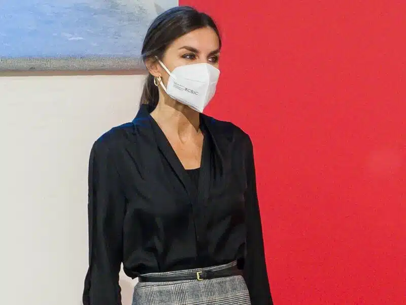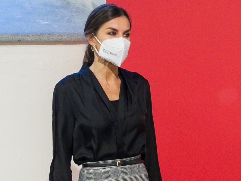 Un acto de claro corte profesional en el que la monarca ha lucido uno de sus looks working infalibles. Doña Letizia ha rescata una de sus prendas favoritas, que le hemos visto hasta en seis ocasiones desde que la estrenó en la inauguración de Fitur en febrero de 2019. Se trata de una  falda asimétrica de Massimo Dutti de estampado de cuadros príncipe de gales. Esta prenda es de lo más versátil y favorecedora. La mujer del Rey Felipe VI se ha decantado en esta ocasión por combinarla con una blusa, stilettos y bolso en color negro. Sin duda, una elección de lo más acertada siempre.