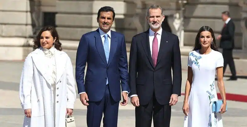 La cercanía que hemos apreciado en el Rey Felipe y en el Emir Tamim Bin Hamad Al Thani, es de lo más sonrientes y relajados durante su encuentro. Tan cordial es su relación que nuestro monarca no dudó en acercarse al Palacio del Pardo donde se alojan el Jeque y la Jequesa durante su visita para recibir a su homónimo catarí a título privado.